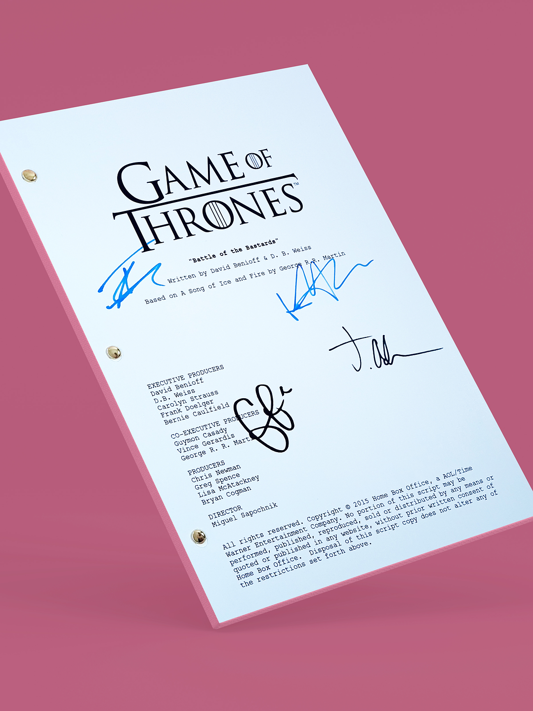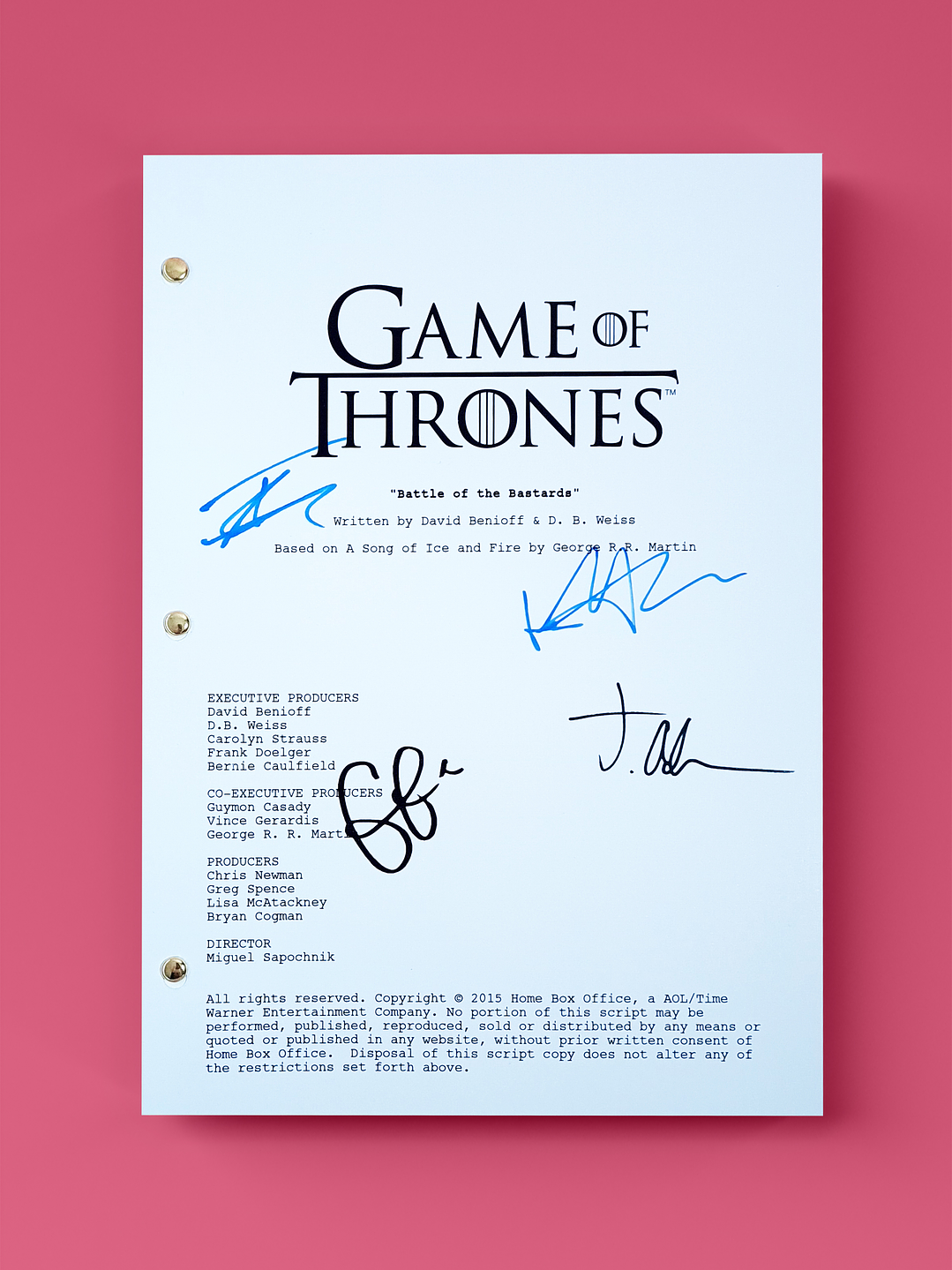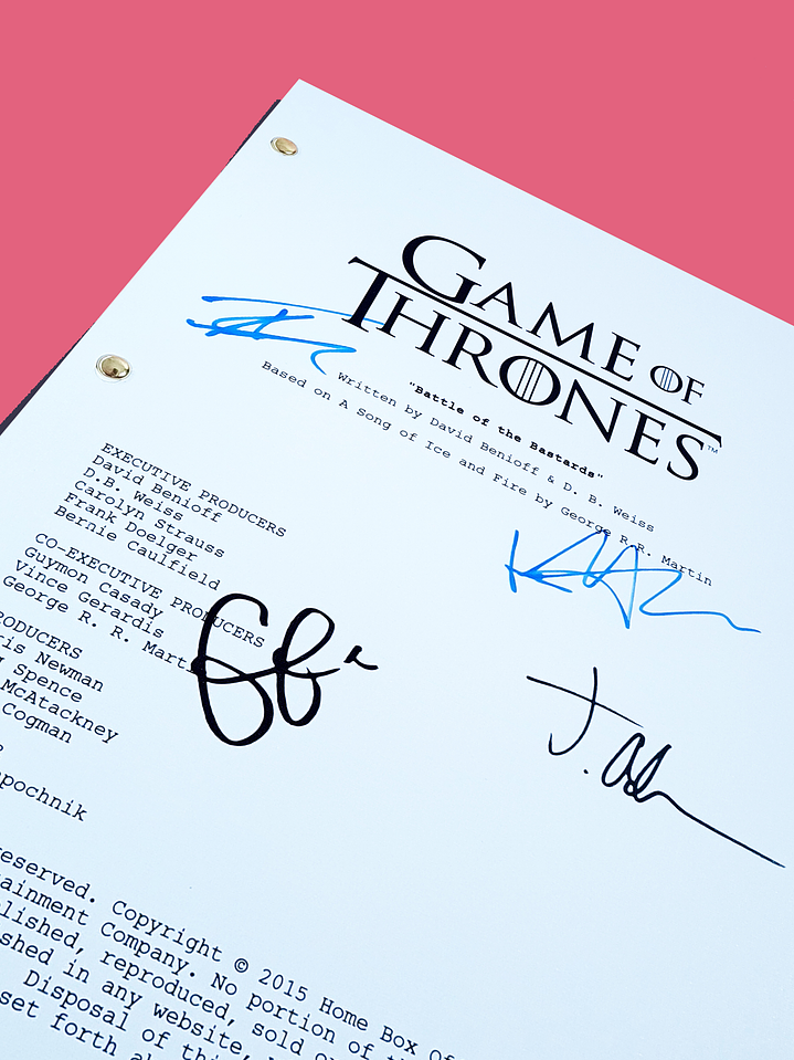 es el noveno episodio de la sexta temporada de la serie de televisión de fantasía medieval Game of Thrones. Este episodio ganó varios premios entre ellos el de "Mejor guion de serie dramática" y "Mejor dirección de serie dramática" en los Premios Primetime Emmy de 2016,2 además de otros premios por Emmys técnicos, entre ellos "Mejor mezcla de sonido para serie dramática", "Mejor edición de fotografía", "Mejores efectos especiales" y "Mejor maquillaje no prostético" LAS FIRMAS INCLUIDAS SON: Emilia Clarke Peter Dinklage Kit Harington Sophie Turner Iwan Rheon