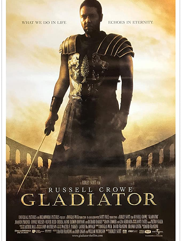 En el año 180, el Imperio Romano domina todo el mundo conocido. Tras una gran victoria sobre los bárbaros del norte, el anciano emperador Marco Aurelio (Richard Harris) decide transferir el poder a Máximo (Russell Crowe), bravo general de sus ejércitos y hombre de inquebrantable lealtad al imperio. Pero su hijo Cómodo (Joaquin Phoenix), que aspiraba al trono, no lo acepta y trata de asesinar a Máximo.