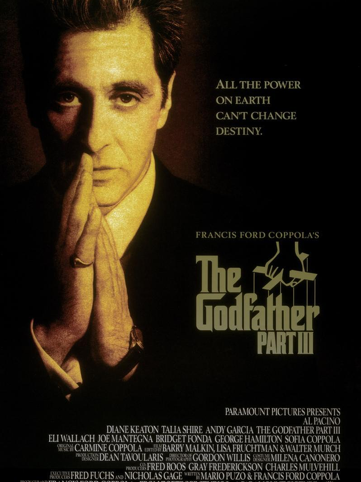 Michael Corleone, heredero del imperio de don Vito Corleone, intenta rehabilitarse socialmente y legitimar todas las posesiones de la familia negociando con el Vaticano. Después de luchar toda su vida se encuentra cansado y centra todas sus esperanzas en encontrar un sucesor que se haga cargo de los negocios. Vincent, el hijo ilegítimo de su hermano Sonny, parece ser el elegido.